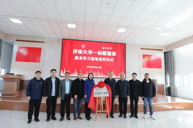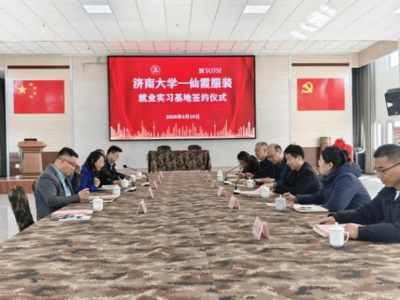 在山东仙霞服装有限公司,副董事长张福生对学院一行到来表示热烈欢迎,并介绍了企业发展历程、产业布局、人才需求及未来规划。陈春锋结合学院发展历程、专业设置、师资力量、人才培养特色以及2026届毕业生基本情况,介绍学院近年来在实践教学、校企协同和服务社会等方面的工作成效。她谈到,学院结合学科专业优势,紧扣学校就业工作部署,围绕实习实训、项目实践、毕业设计和岗位拓展等重点环节,进一步深化与企业合作对接,推动人才培养与行业需求同频共振,更好服务学生成长成才和高质量就业。董俊杰从学校就业工作整体布局上作介绍。他指出,学校始终把毕业生就业工作摆在突出位置,持续将校院工作一体化模式落到实处,形成“领导抓、教师推、校友帮、辅导员促”的四级就业助推体系。希望双方以此次交流为契机,在就业实习基地建设、岗位资源共享、人才供需对接等方面开展更加务实深入的合作,共同推动校企协同育人取得更大成效。